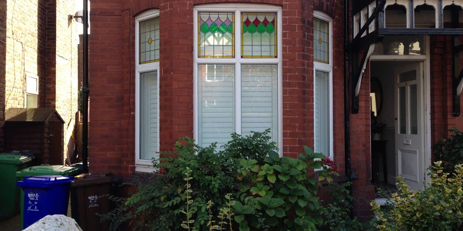 An outside view of this three sided bay widow we fitted with shutters last week – with the louvers open & closed.