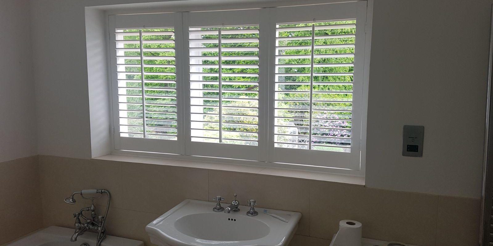 Real Hardwood Shutters are perfect for controlling light and privacy in your bathroom – you can angle the slats of your shutters so that they light through & you can see out, but people can’t see in!