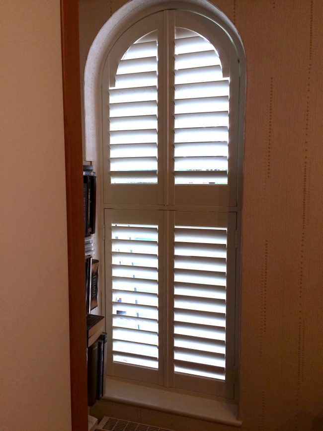 The before & after of one of the window shutters we installed in Timperley, Altrincham yesterday. A beautiful little arch window tucked away in the bedroom ๐