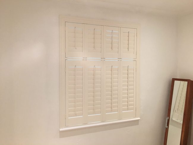 Check out our recent hardwood shutter install for this bathroom. Two tier on tier window shutters with the classic front push rod, finished in cream with 6 layers of paint & lacquer to ensure no cracking or splitting even in wet and steamy conditions.