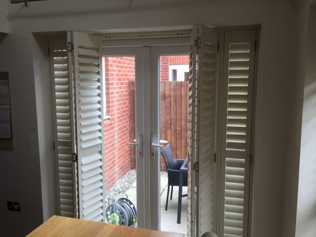 Check out one of our plantation shutter installations from today in Marple, Stockport – Hardwood Poplar patio door & standard window shutters