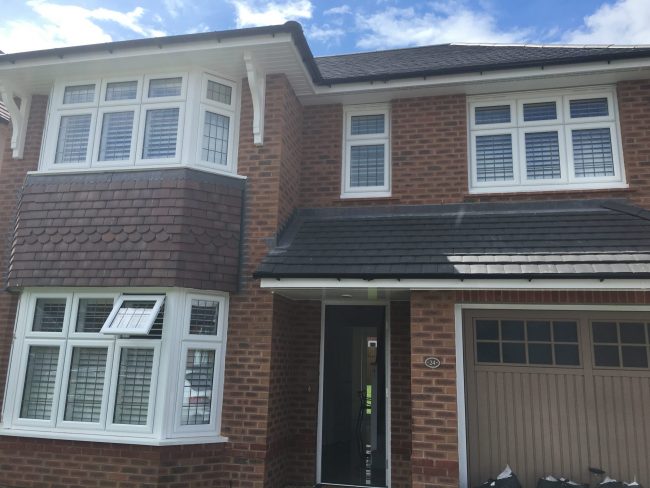 Check out todays install: Plantation Shutters in Stockport. Two 3-Sided Bay Windows & 2 Standard Windows at the front of the house, finished in bright white with concealed control rods.