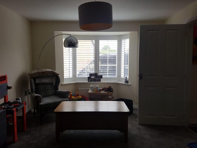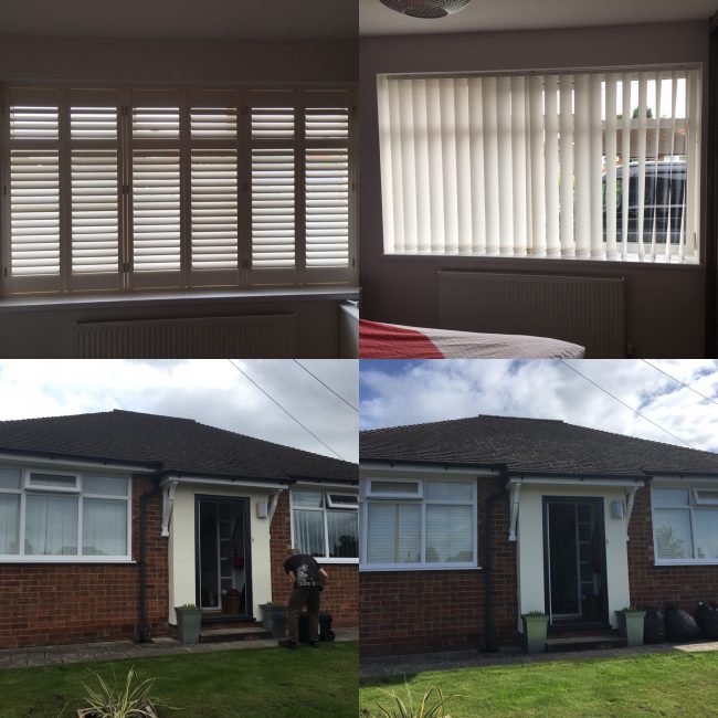 Another blinds vs shutters: New off white shutters in Cheadle to replace this happy customers window blinds. Would you pick the before or the after?