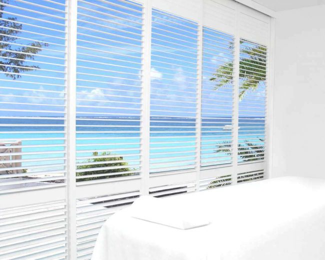 Plantation shutters aren’t just limited to window coverings, they are also perfect for room dividers – whether thats shutters like in the picture for a more open room – or a large track door shutter to separate two rooms.