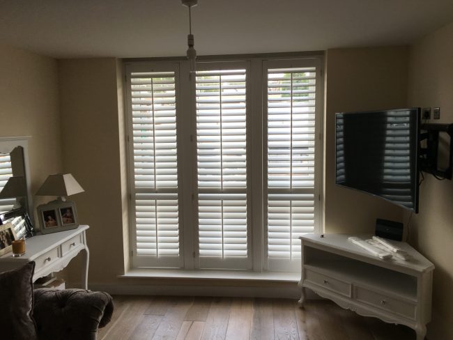A variety of shutters for this recent customer in Urmston, Manchester – Café style shutters for the living room, with tier on tier shutters upstairs & in the bedroom.